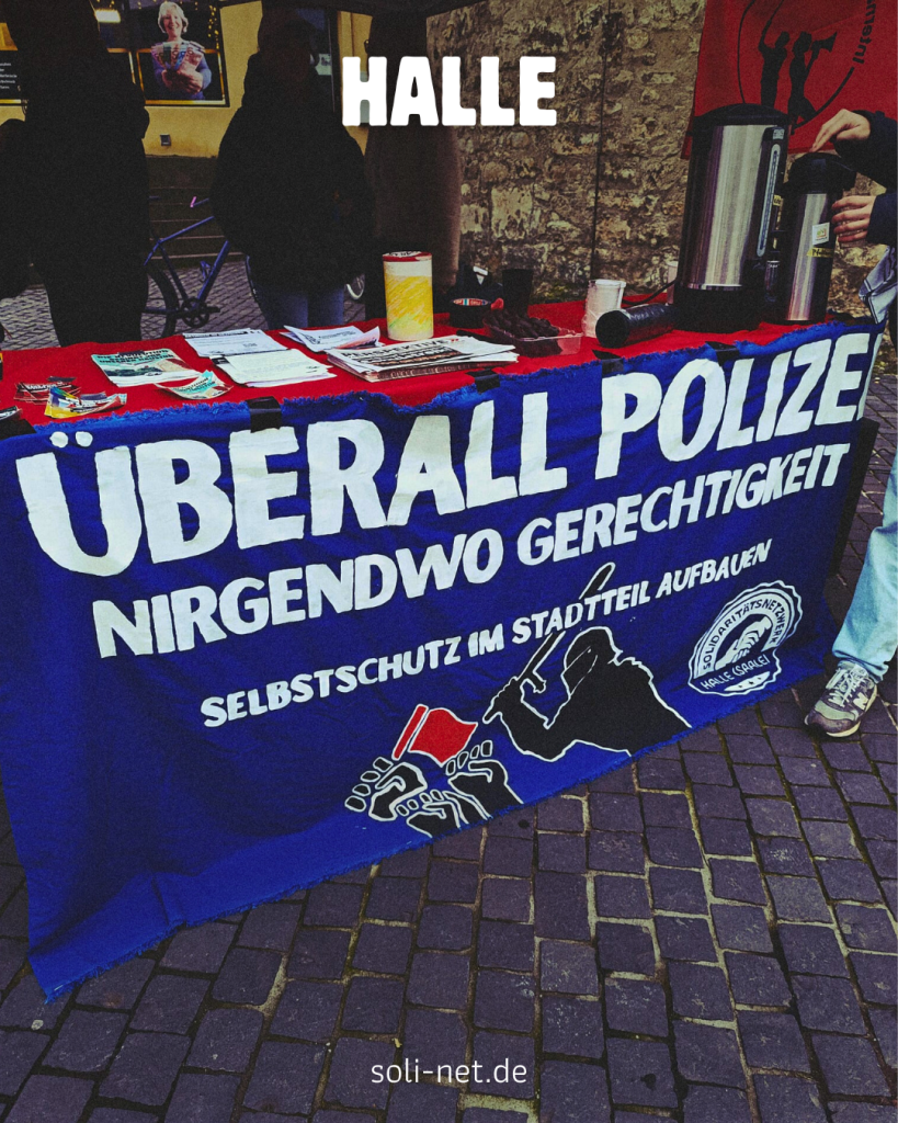 Wir als Solidaritätsnetzwerk wollen schon heute in unseren Stadtteilen ein neues solidarisches Miteinander zwischen allen, die im Kapitalismus ausgebeutet und unterdrückt werden, aufbauen. Und wir wollen eine Gesellschaft erkämpfen, in denen die grundlegenden Machtverhältnisse umgestürzt werden, den Sozialismus. Wenn die Polizei den Kapitalismus verteidigt, hat sie weder in einem solidarischen Miteinander im Stadtteil noch in einer sozialistischen Gesellschaft einen Platz!