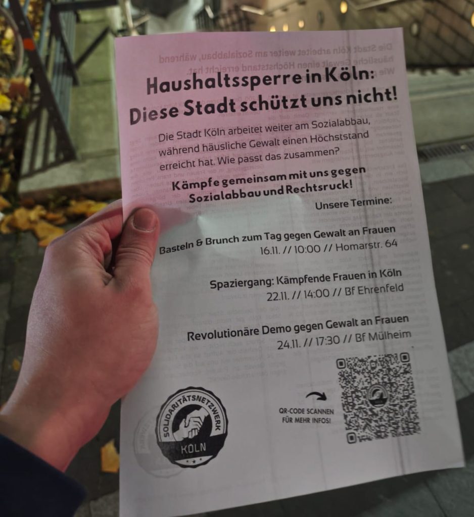 Als Kölner FKO-Gruppen haben wir uns am Sonntag (2. November) an der Demo „Menschenrechte verteidigen – Merzpolitik stoppen“ beteiligt. Mit ca. 3000 Leuten haben wir deutlich gemacht: Probleme im Stadtbild…